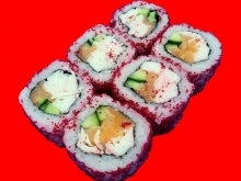 Рис, лосось, крем-краб, огурец, икра масаго.
