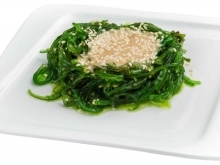Водоросли Чука, угорь, ореховый соус, кунжут